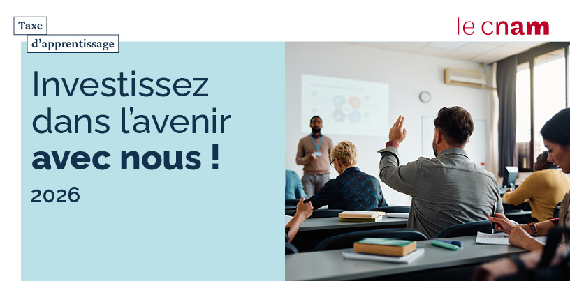 Le Cnam est une institution inclusive en ouvrant ses portes et en accompagnant tous les profils, quels que soient leurs filières de formation ou leur milieu social. Cette contribution à la taxe d’apprentissage, nous permet d’accompagner nos élèves dans la construction de leur projet professionnel.